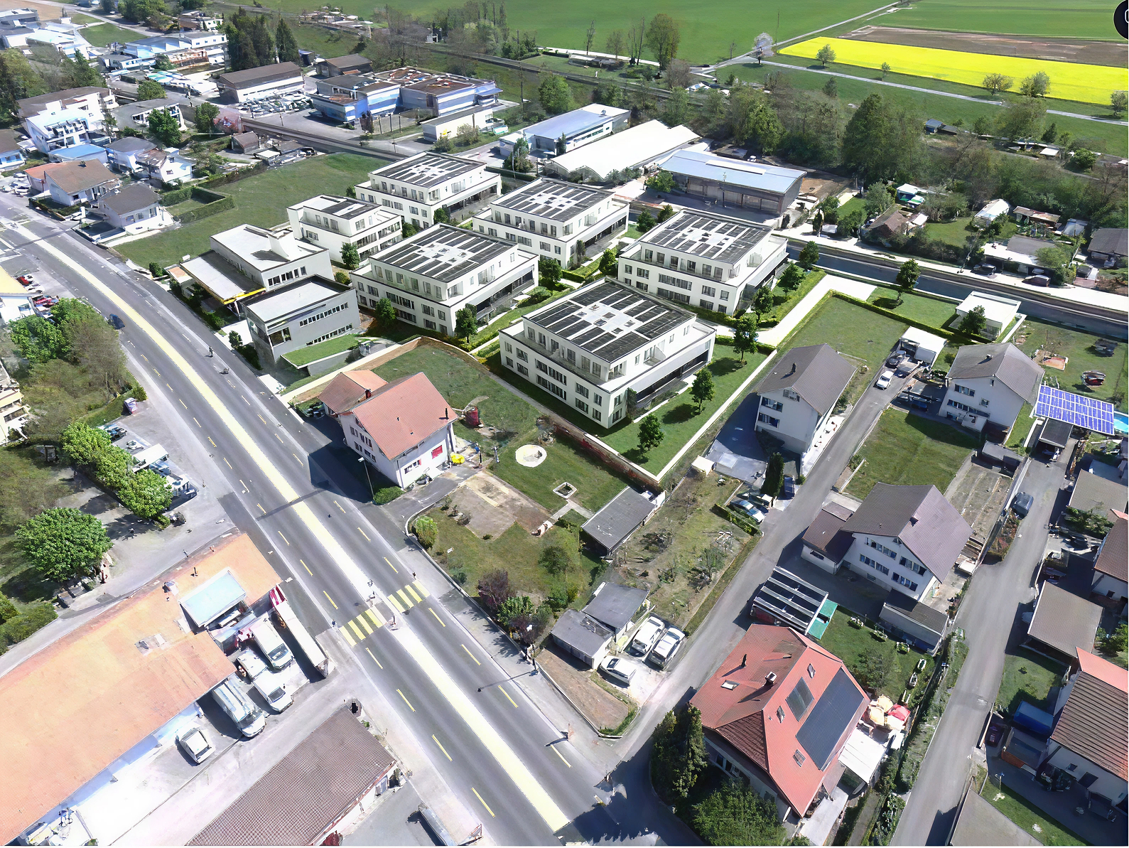 Am Spatzenweg in Lengnau entstehen 6 moderne Mehrfamilienhäuser mit insgesamt 85 Mietwohnungen. Das Projekt überzeugt durch eine klare Architektursprache, hohe Energieeffizienz und eine attraktive Wohnlage.